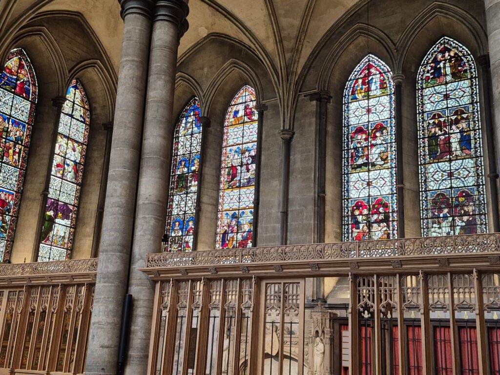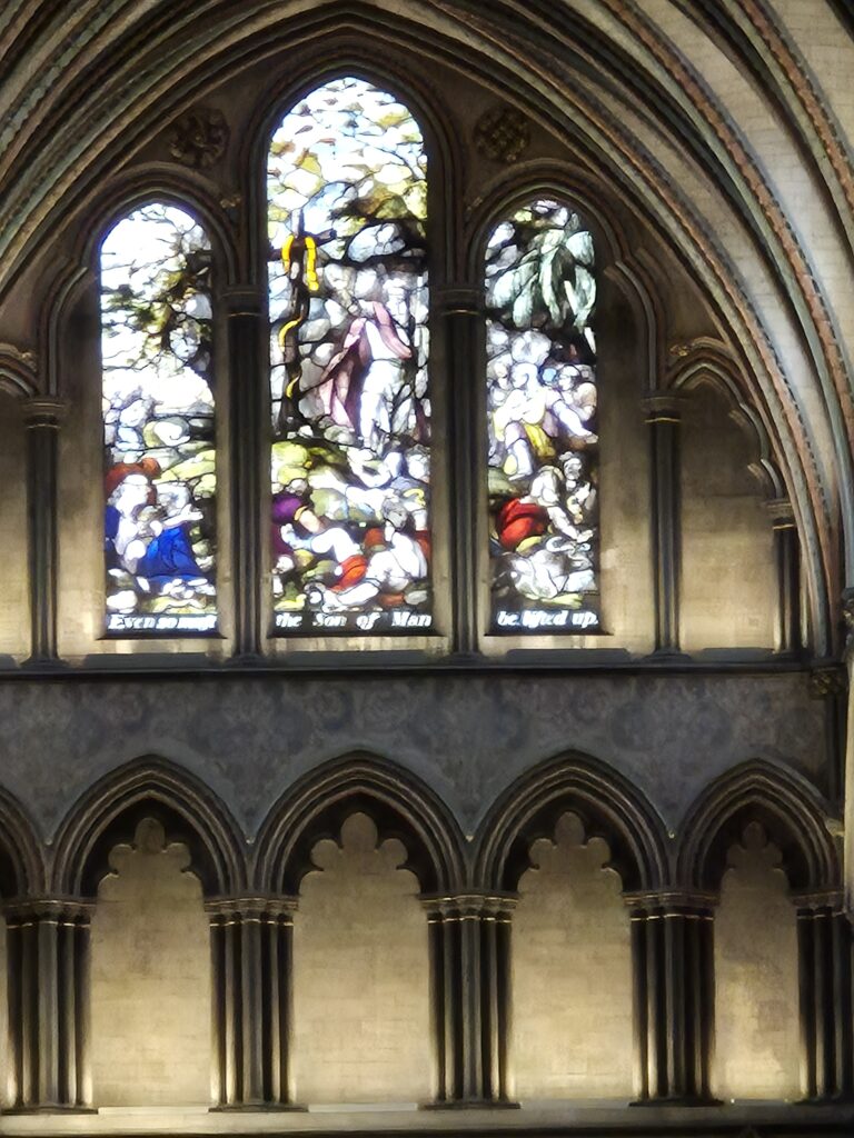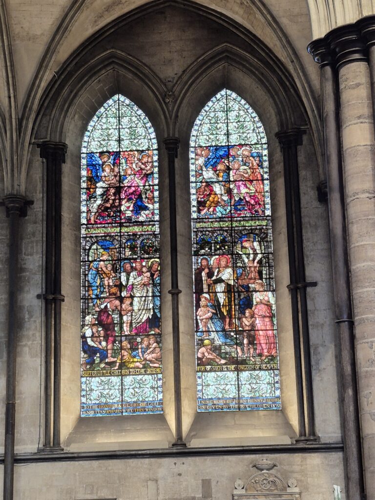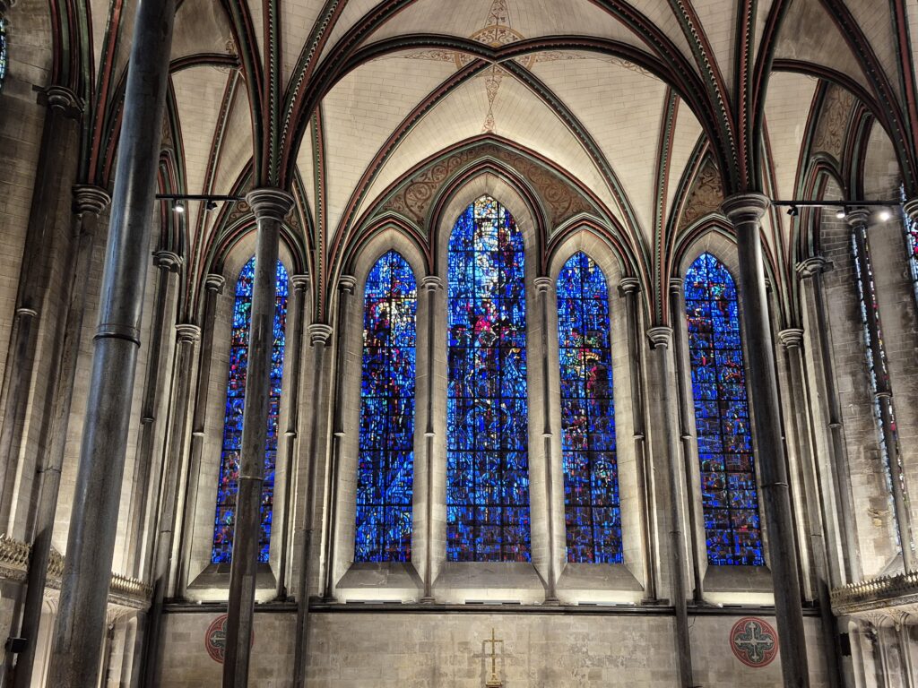 Our next stop was to the town of Salisbury and the incredibly impressive Cathedral. While the Catholic church may have locked us out (in Alkmaar) the Anglican church had their doors open for us. We both clicked away furiously but Karin may have had a particular interest in the stained glass and windows.