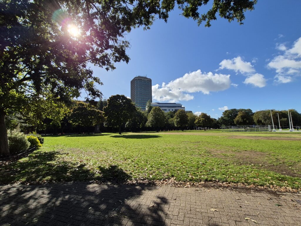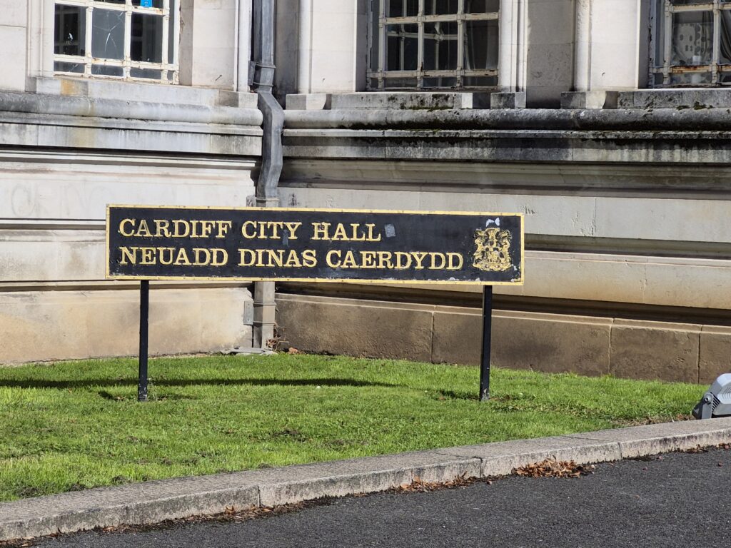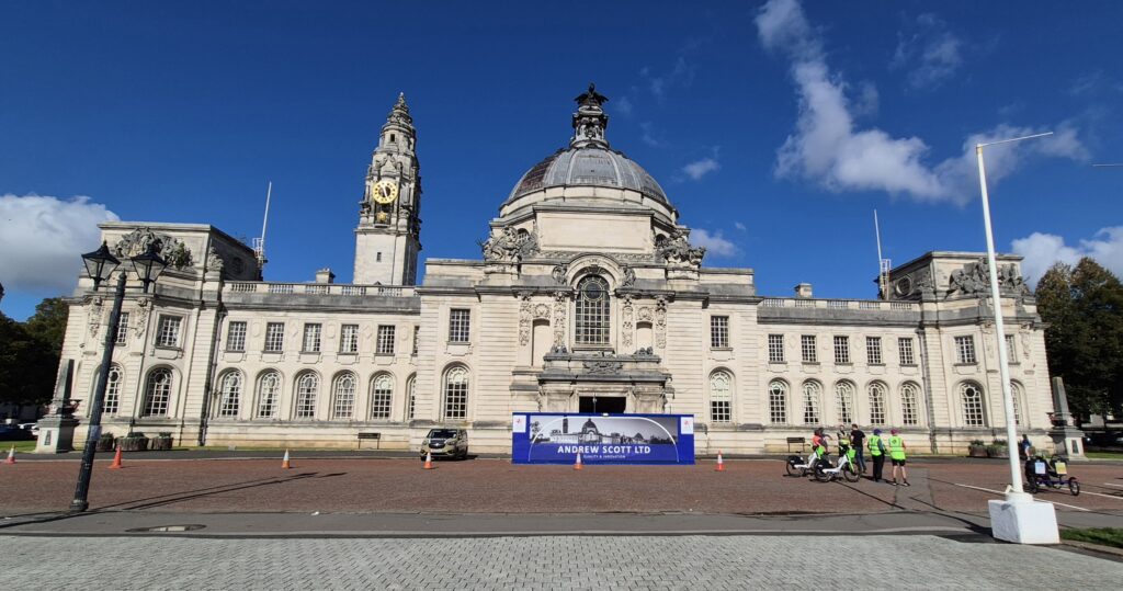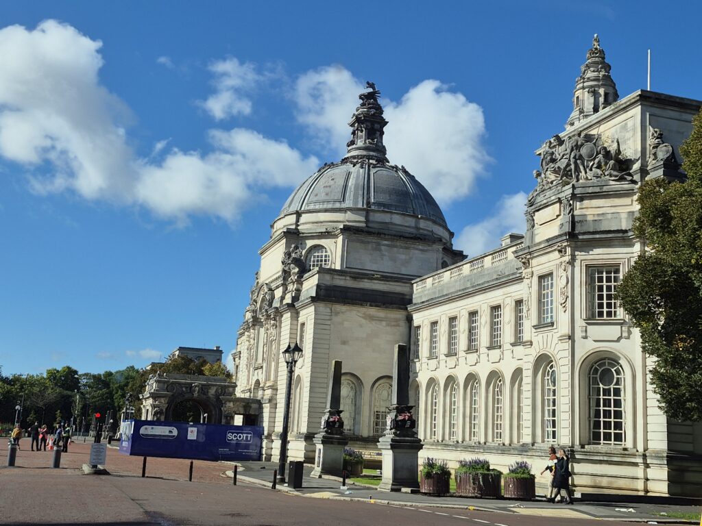 Sadly, upon entering Cardiff, the parking situation in Wales was no better than in Oxford, so we continued our quick sniper runs in and out of tourist areas for Karin to get happy snaps. The first of which was Cardiff Arms Park.