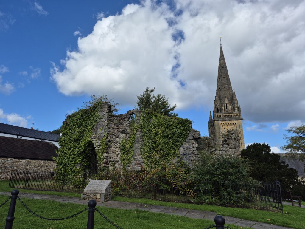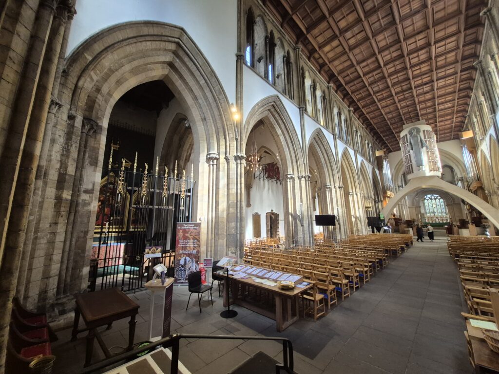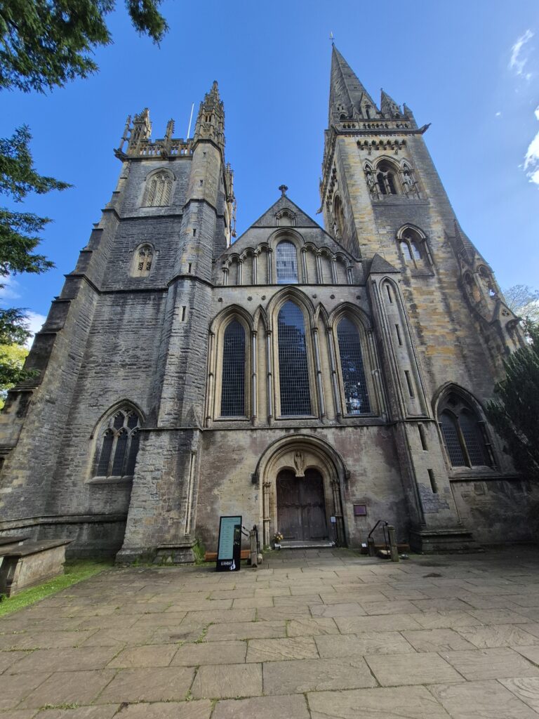 Llandaff Cathedral it was…officially the Cathedral Church of Saints Peter & Paul. It stands on one of the oldest Christian sites in Britain amid the ancient “City of Llandaff”. Despite being surrounded on all sides by modern Cardiff, the Llandaff conservation area remains comparatively unspoilt and surprisingly tranquil.