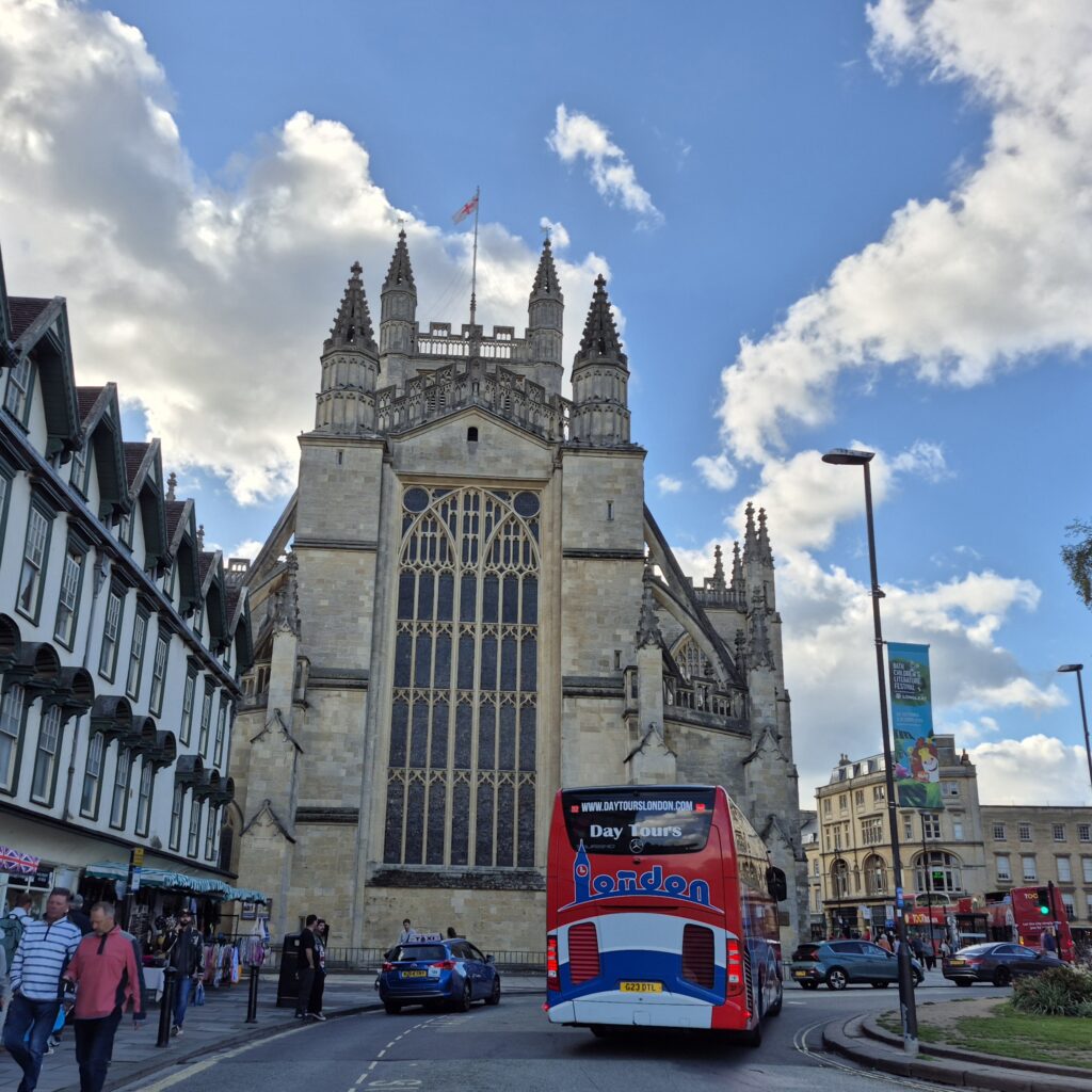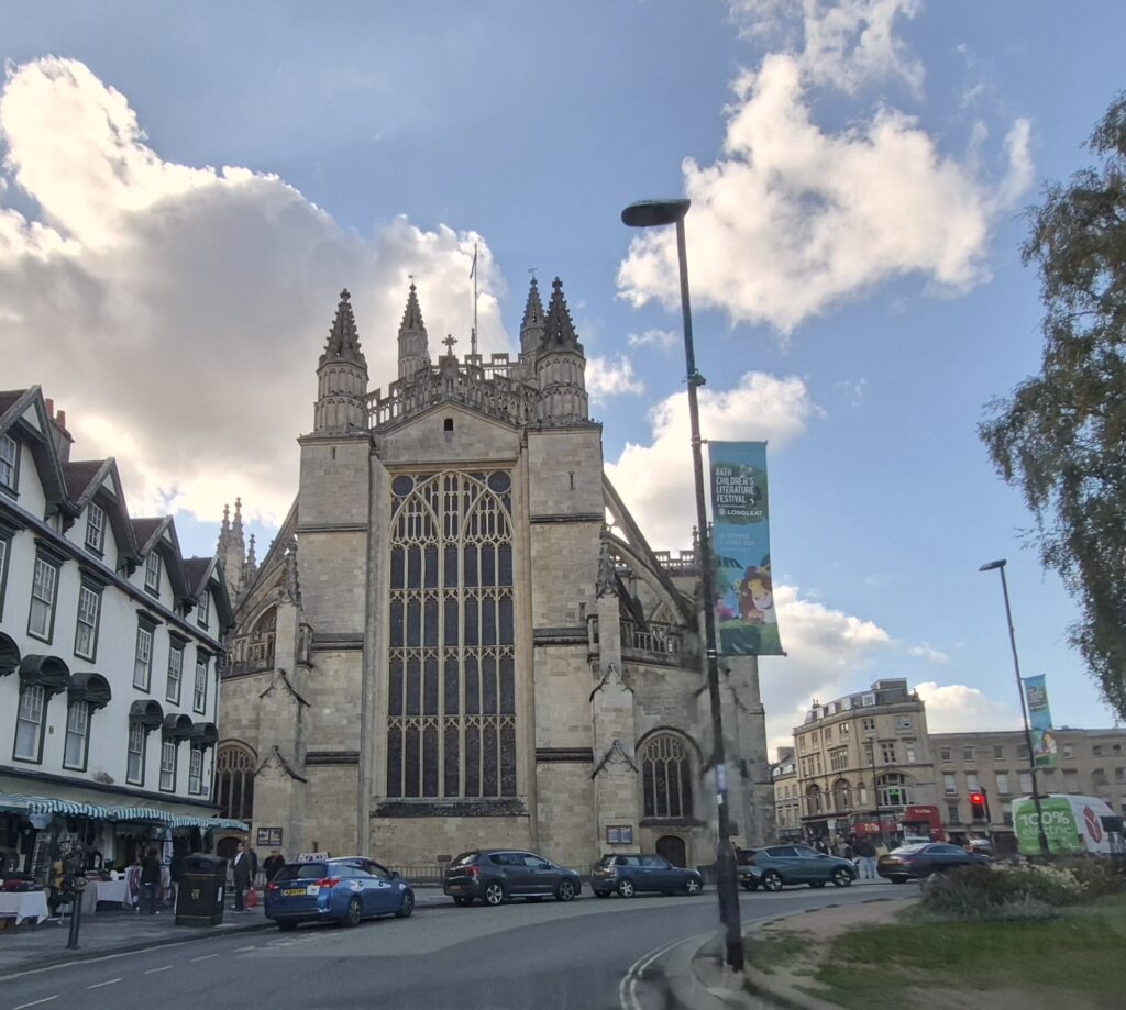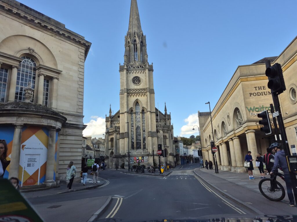 Bath was a dashing visit, primarily to Bath Abbey. We had hoped to get out and wander about…but you guessed it…nowhere to park within cooee of the place. So we lapped the town, hunting high ground to get a nice overview (high) shot of the place. But sadly trees and houses kept getting in the way.