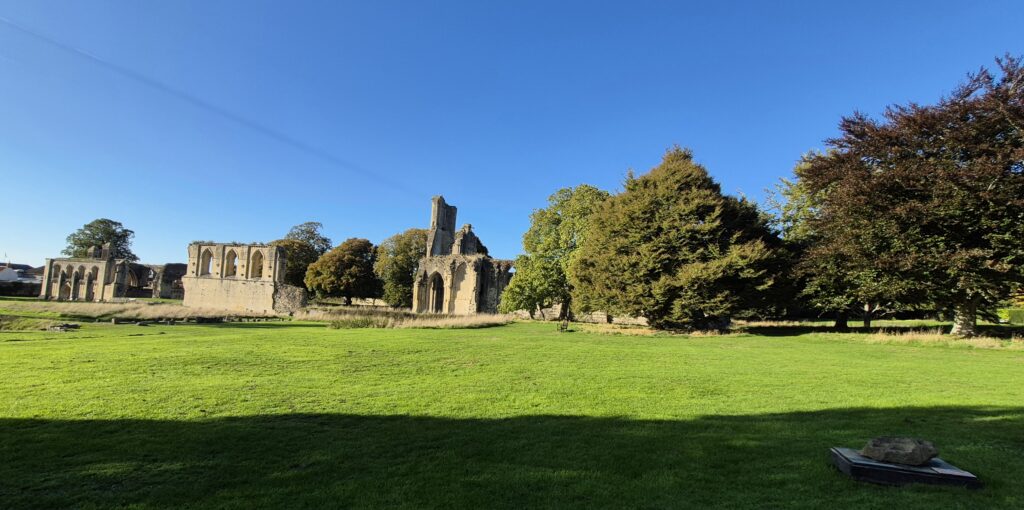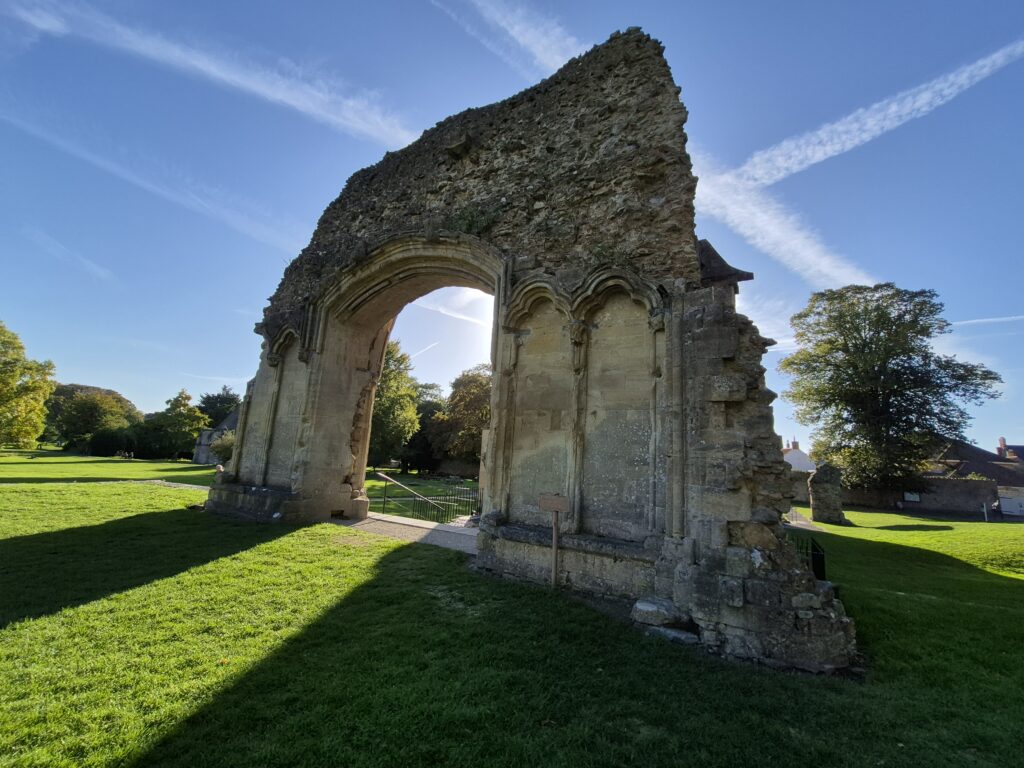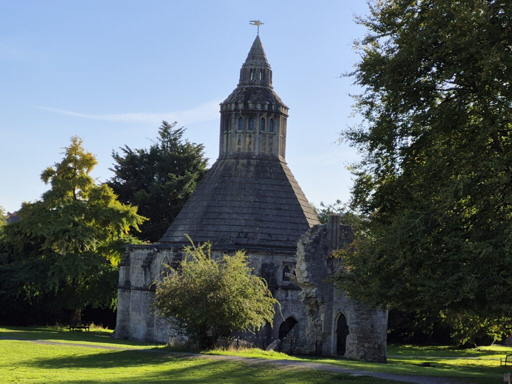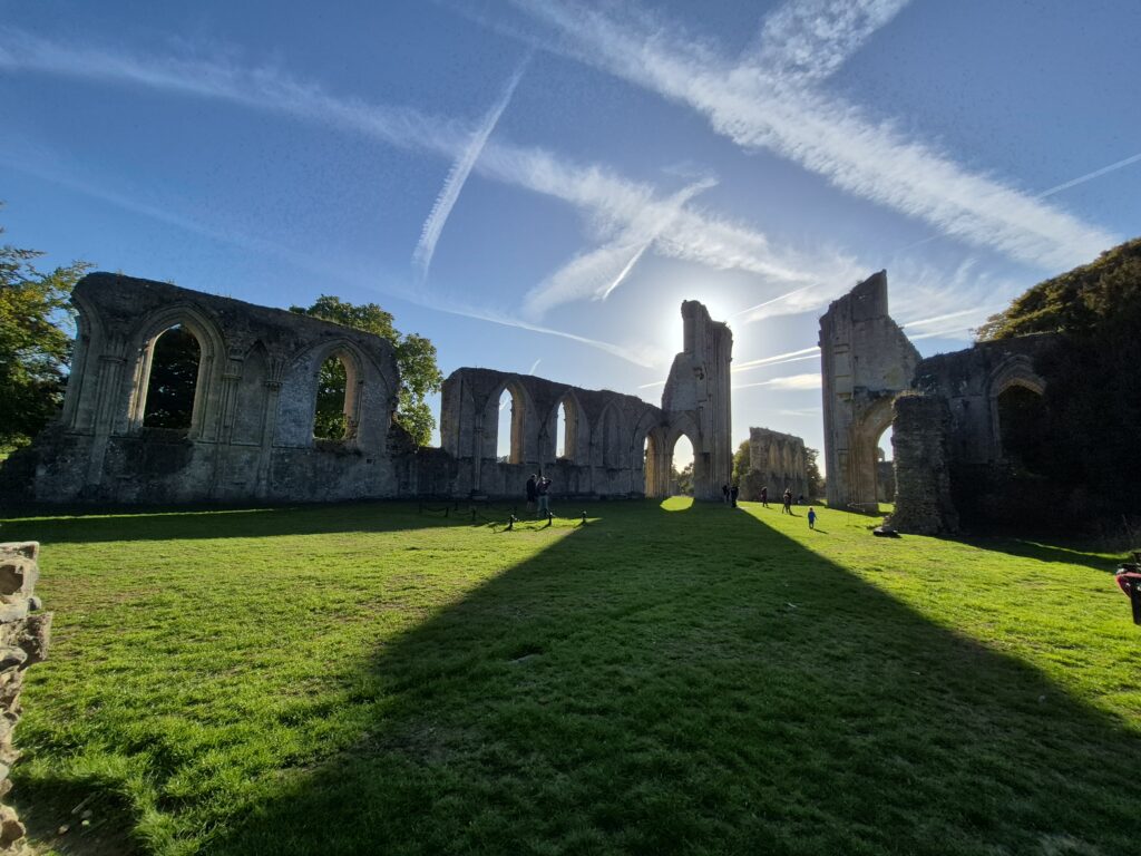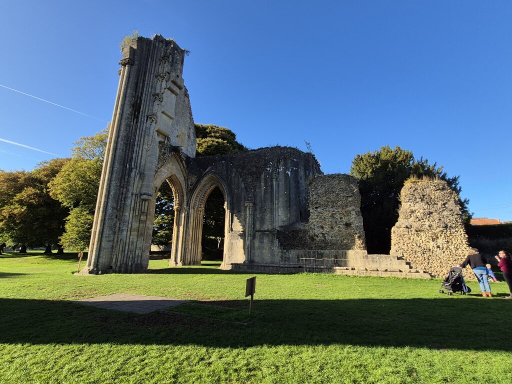 The main event for us was the Glastonbury Abbey. We arrived late in the day, but still with enough time for Karin to run in and do the tourist thing. I chose to save the entrance fee and steal her photos for the blog.