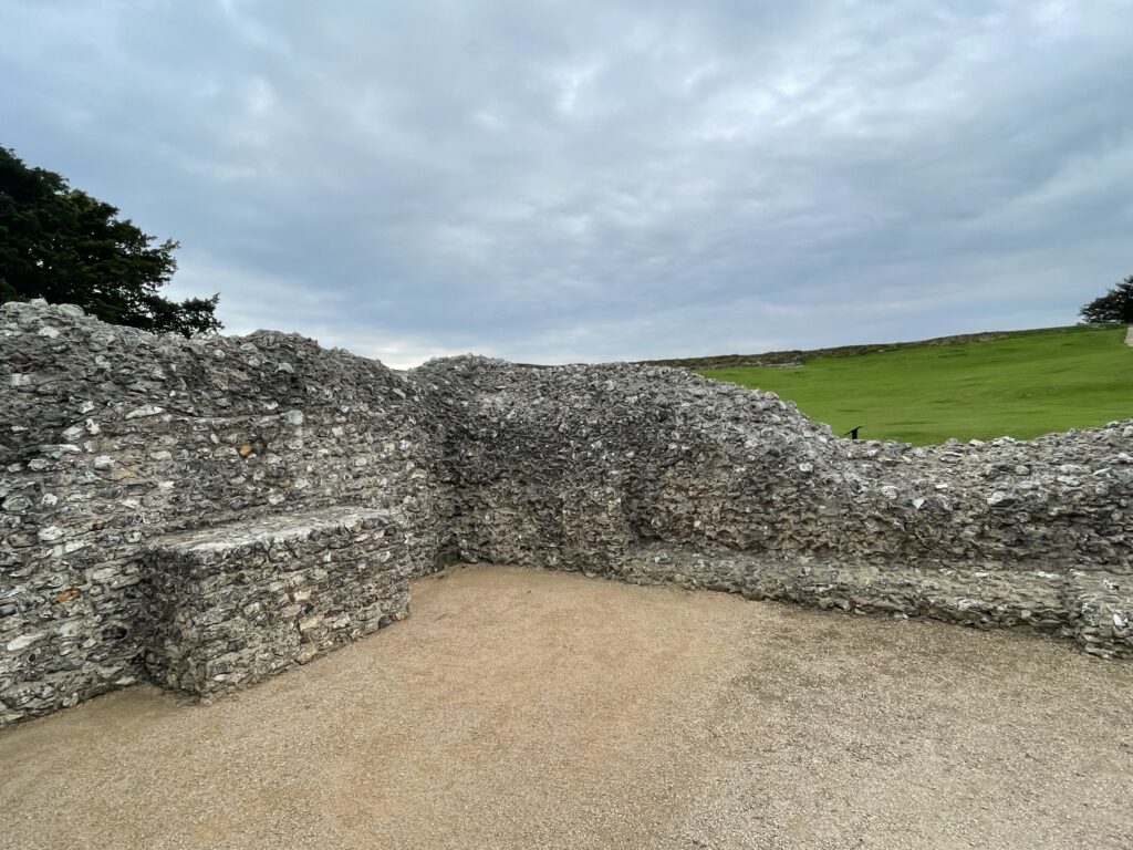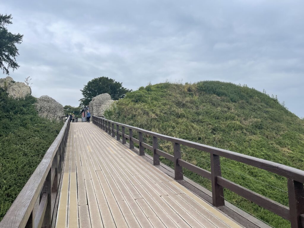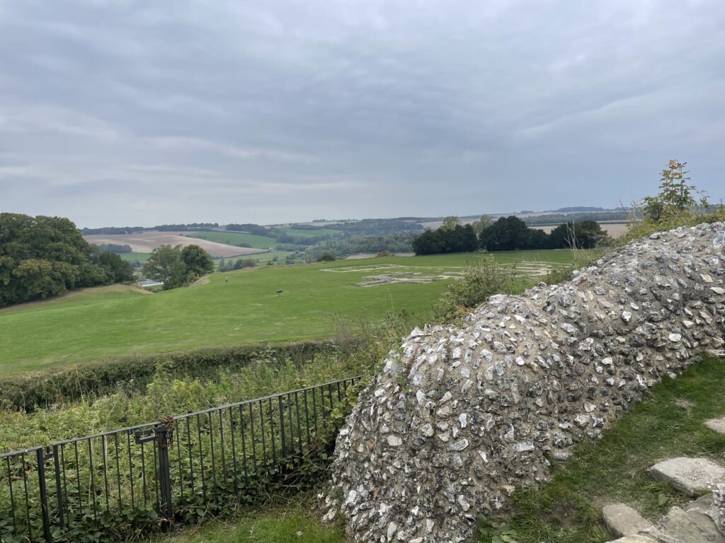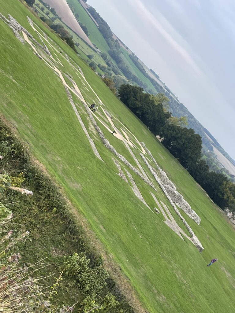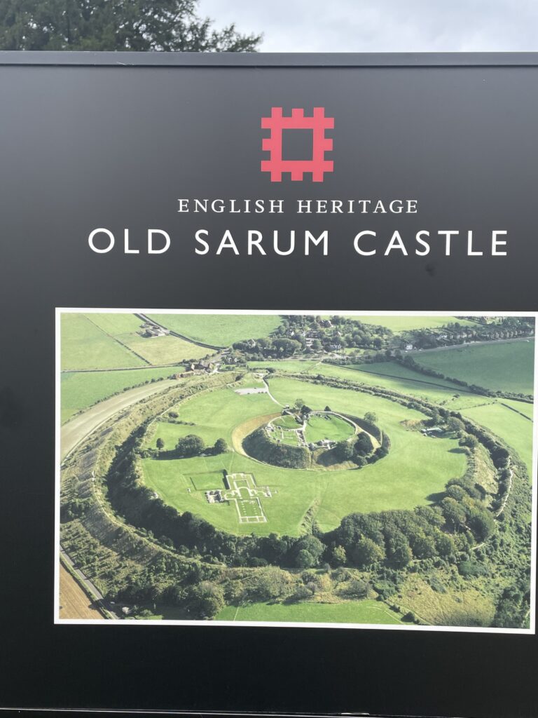 After lunch it was up the hill to visit the Old Sarum Castle which is the ruined and deserted site of the earliest settlement of Salisbury. The settlement appears in some of the earliest records in the country. There is evidence that early hunters and, later, farming communities occupied the site and a protective hill fort was constructed around 400 BC. The hillfort is broadly oval shaped, measuring 400 m in length and 360 m in width.